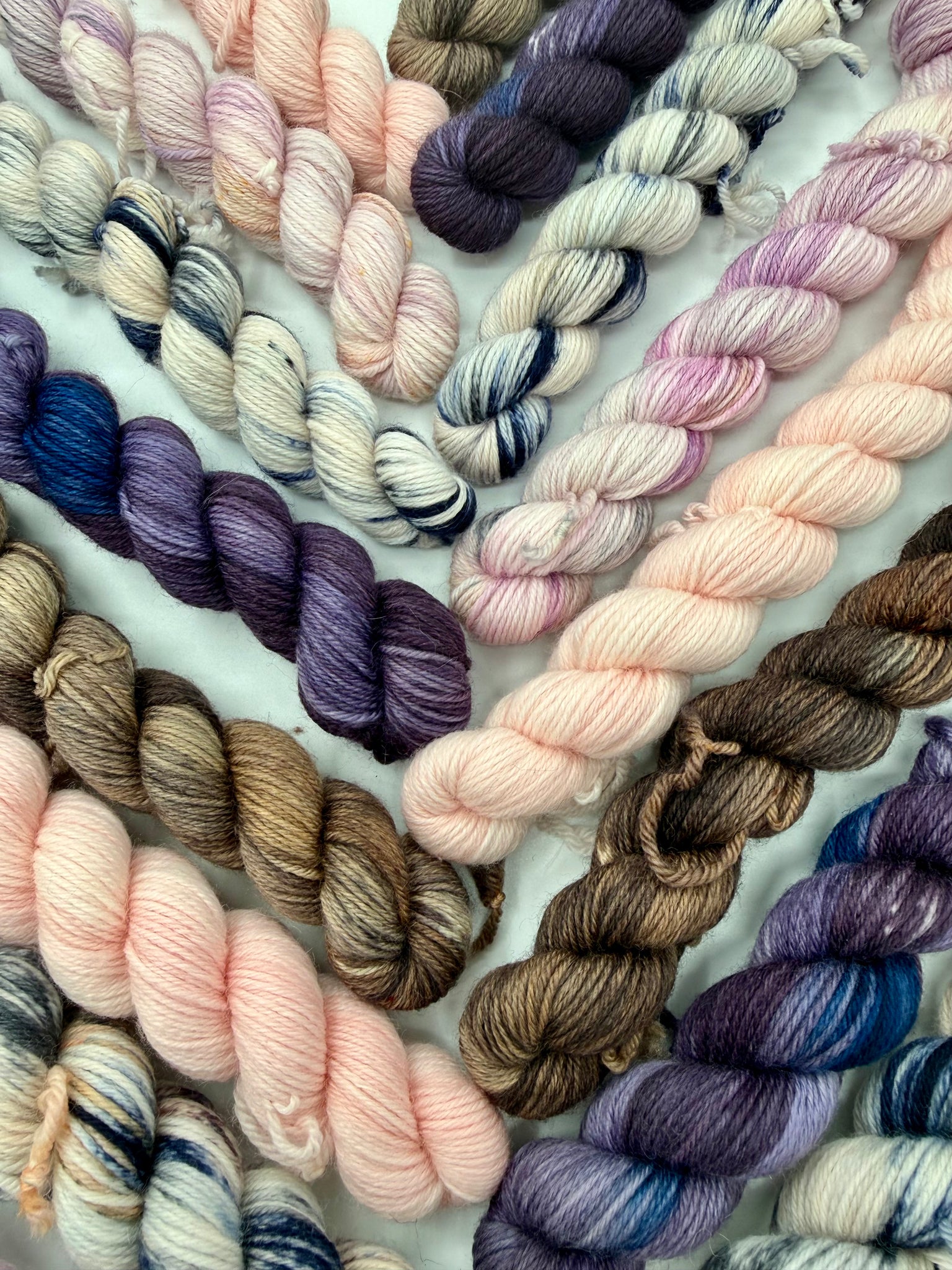 - Alt garn er farvet i hånden i små portioner. Alle garner er unikke og der er små forskelle i toner, speckles og fordelingen af farven.